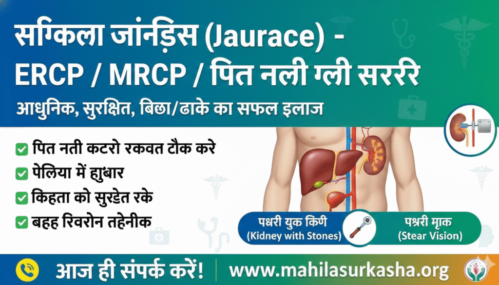 पित्त की नली में रुकावट होने पर ERCP या लैप्रोस्कोपिक सर्जरी द्वारा उपचार।