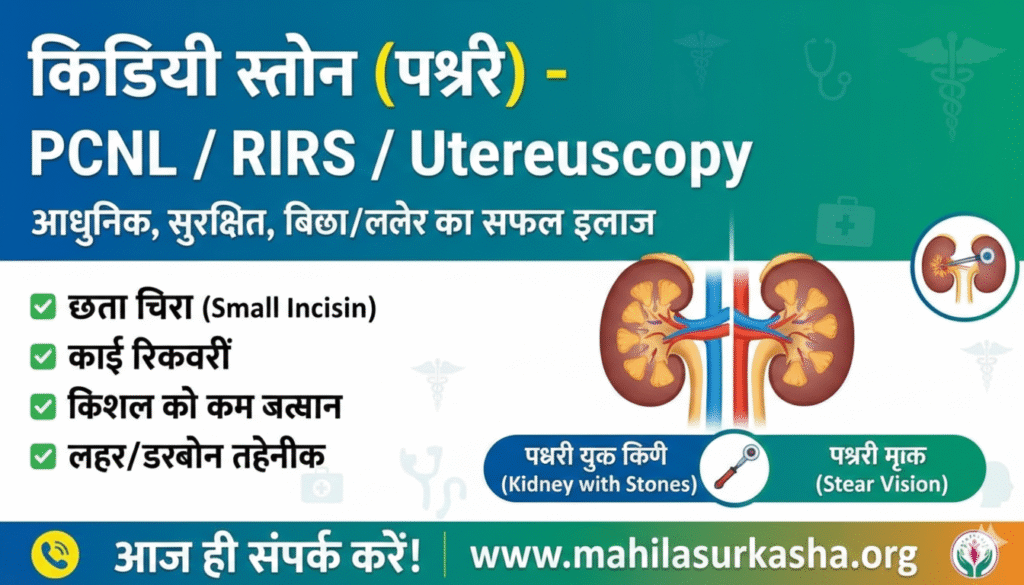 PCNL, RIRS या लेजर तकनीक द्वारा बिना बड़े चीरे के पथरी को बाहर निकाला जाता है।
