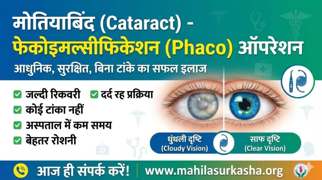 फेकोइमल्सीफिकेशन तकनीक द्वारा आंखों के धुंधले लेंस को हटाकर नया कृत्रिम लेंस (IOL) लगाया जाता है।